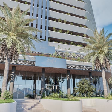 Au rez-de-chaussée, un casino ultramoderne apporte dynamisme au quartier, créant un pôle d’animation incontournable pour les visiteurs et les résidents de l’île. Au sommet de l’édifice, un restaurant panoramique et une salle de sport entièrement équipée permettent de profiter d'un moment agréable, que ce soit autour d’un dîner raffiné ou d’une séance d’entraînement, le tout avec vue imprenable sur l'océan.