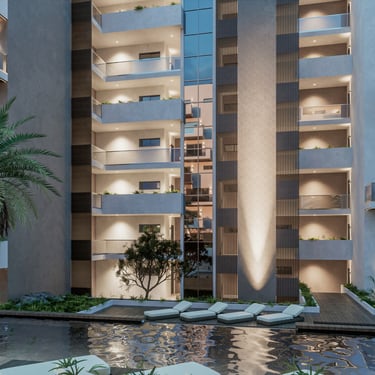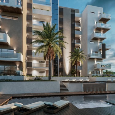 Ce projet se distingue par son architecture résolument contemporaine, réinterprétant avec audace l’esthétique des hauts immeubles sur l’île. Son élément signature réside dans ses balcons en porte-à-faux qui rythment les façades et confèrent à chacun des deux bâtiments une silhouette immédiatement reconnaissable dans le paysage urbain de Sint Maarten.